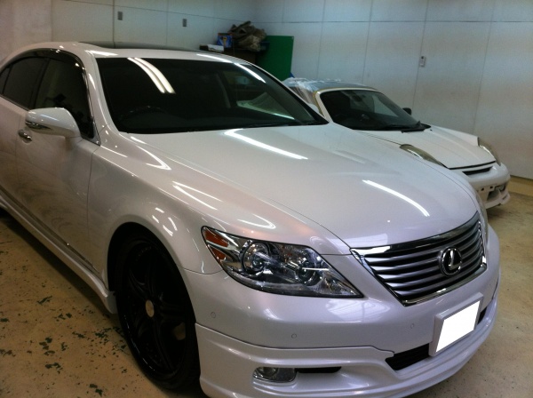 愛車レクサスLS460へクィーンクラスター及びホイールC、ウィンド撥水加工を施工させて頂きました。